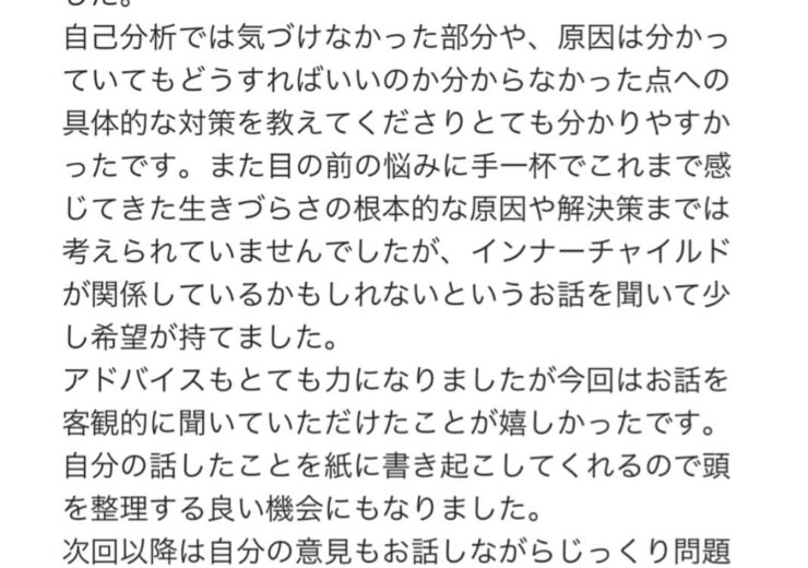 - 対面は手書きの心のカウンセリングメモをプレゼントしております。