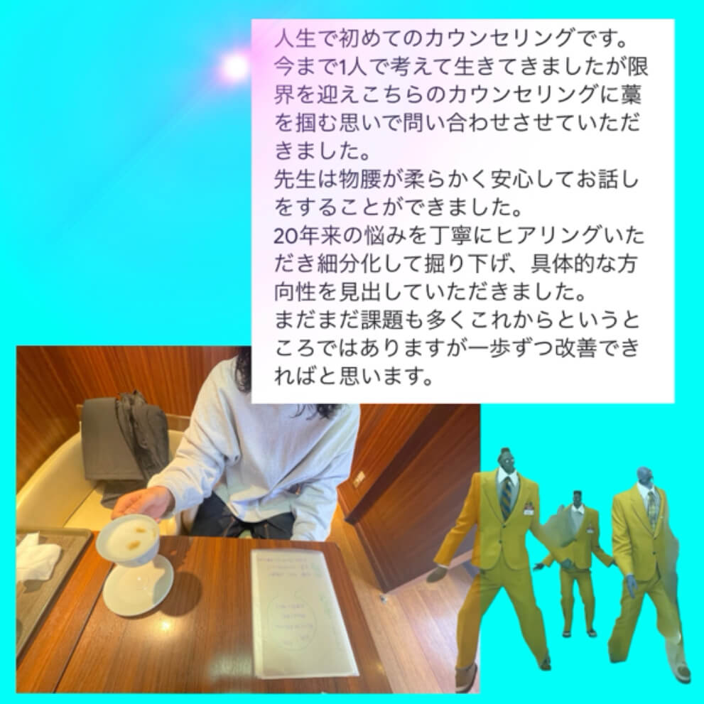 - 20年来のお悩みも人生の棚卸しのような感覚でお話しできます。私自身もカウンセリングで大変癒され、学びになっています✨